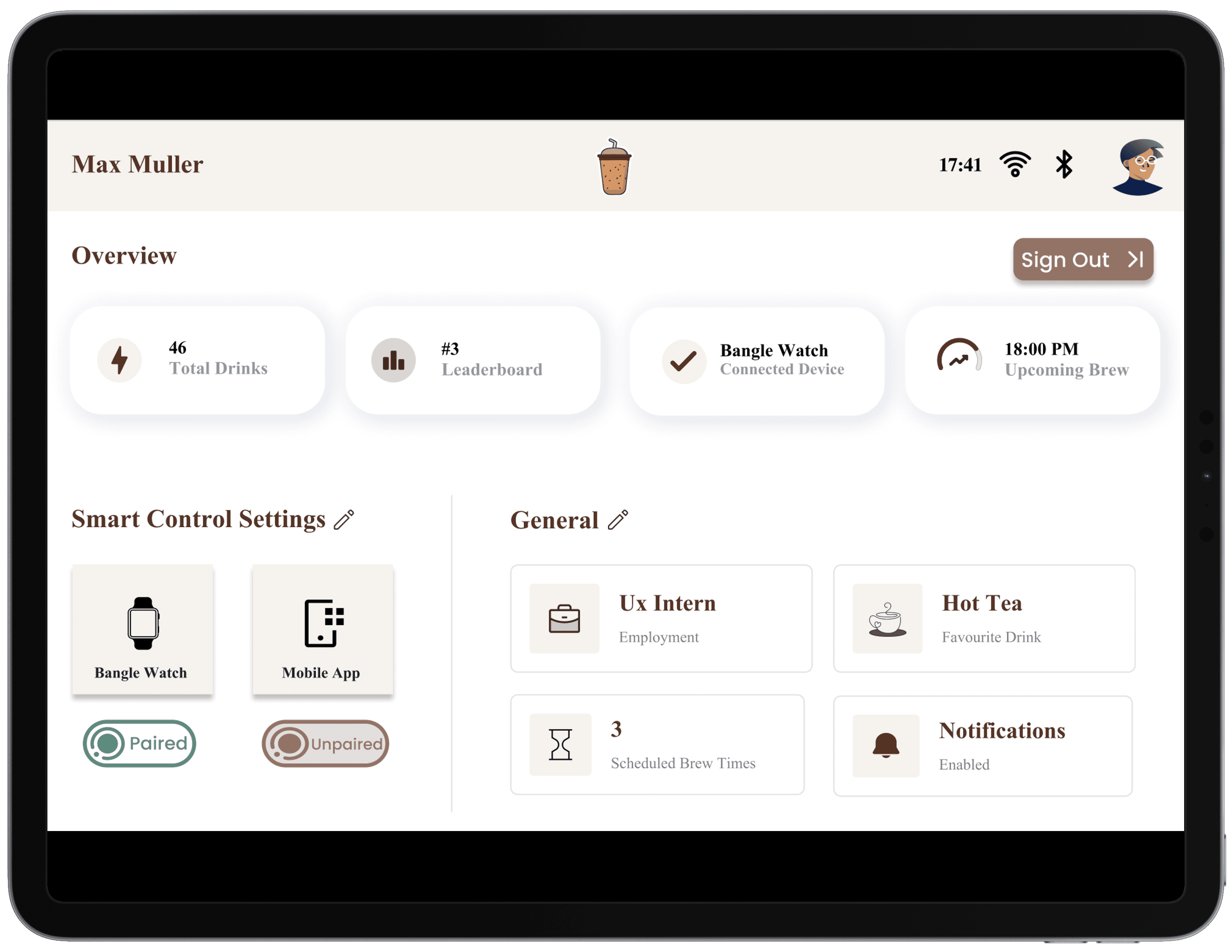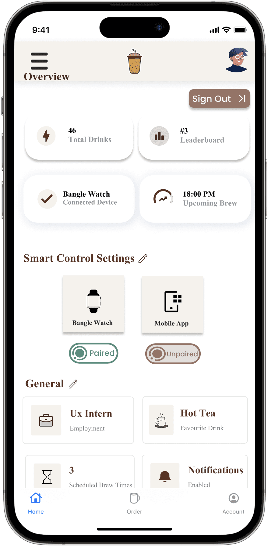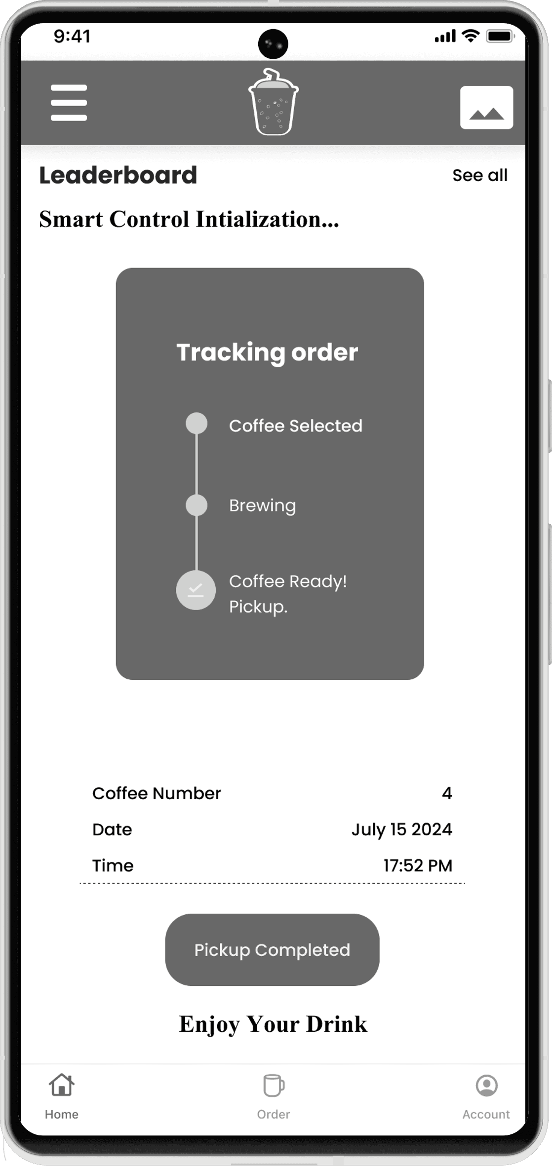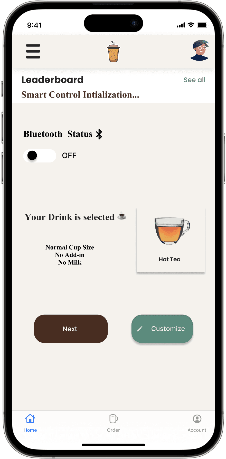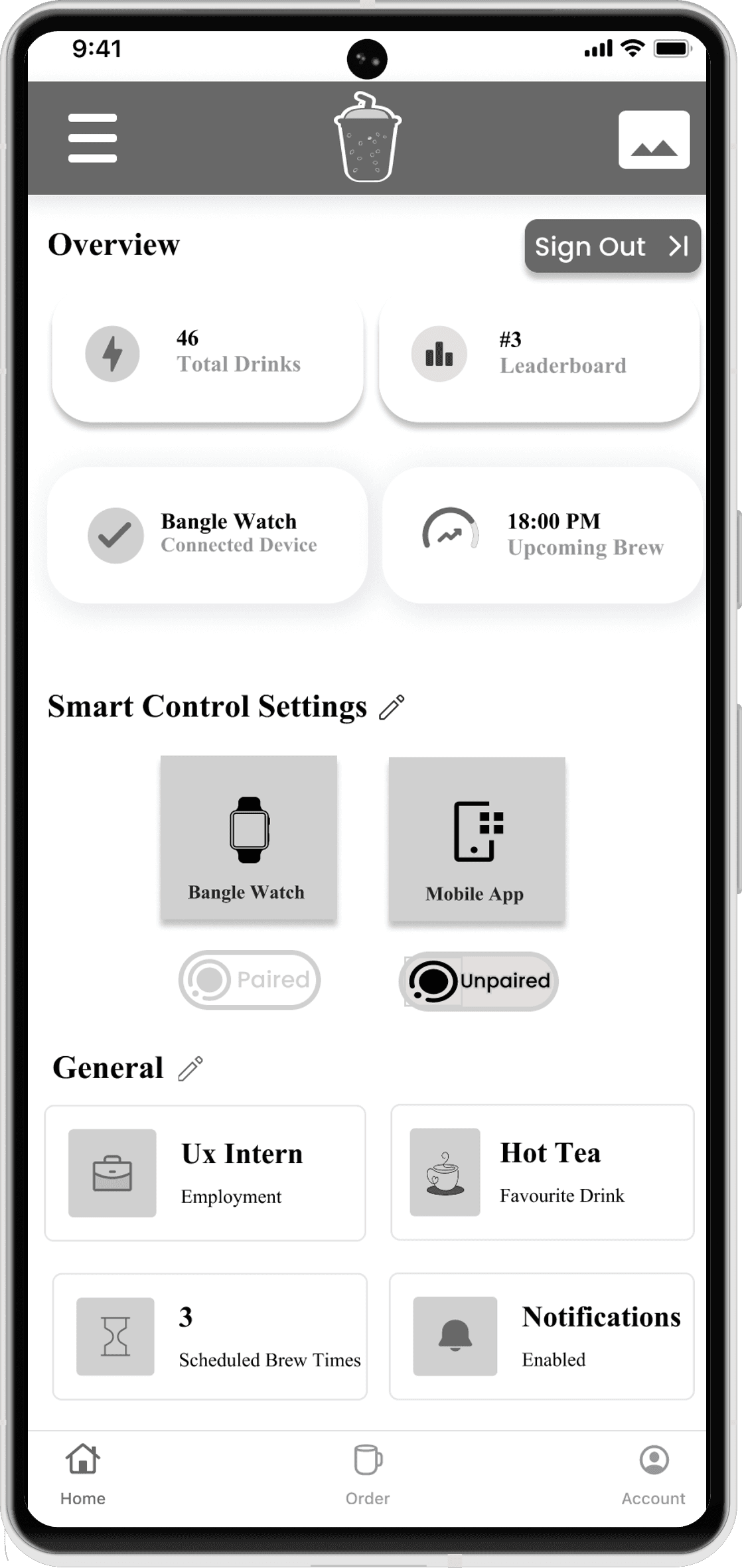 In this project, the interaction design was built to simplify the coffee-making process for users, regardless of their technical expertise. Both the BrewView interface and the mobile app were designed with intuitive touch controls and clear visual cues, allowing users to easily navigate through brewing options and settings. A key focus was on reducing the number of steps needed to complete a task, ensuring a quick and hassle-free experience.