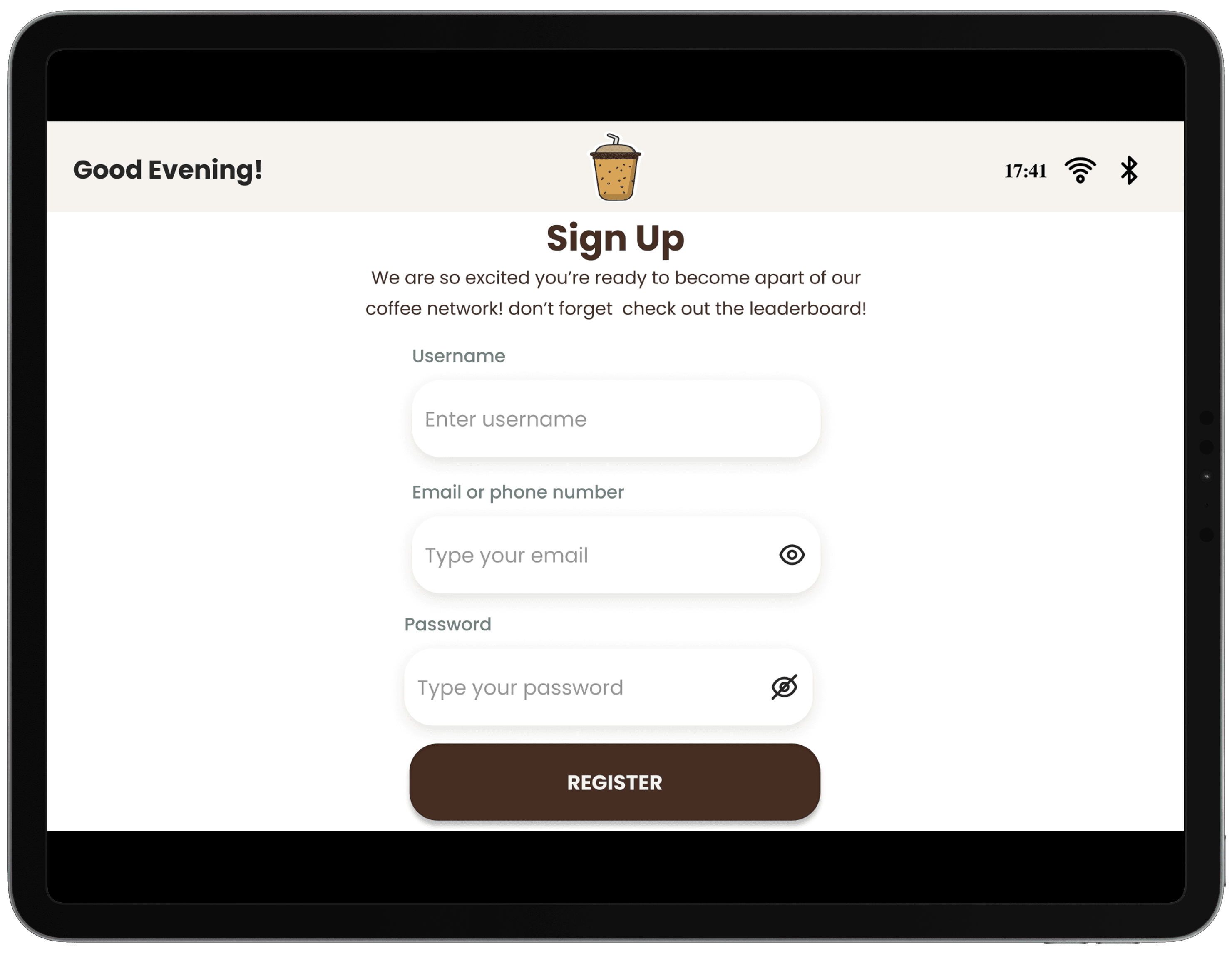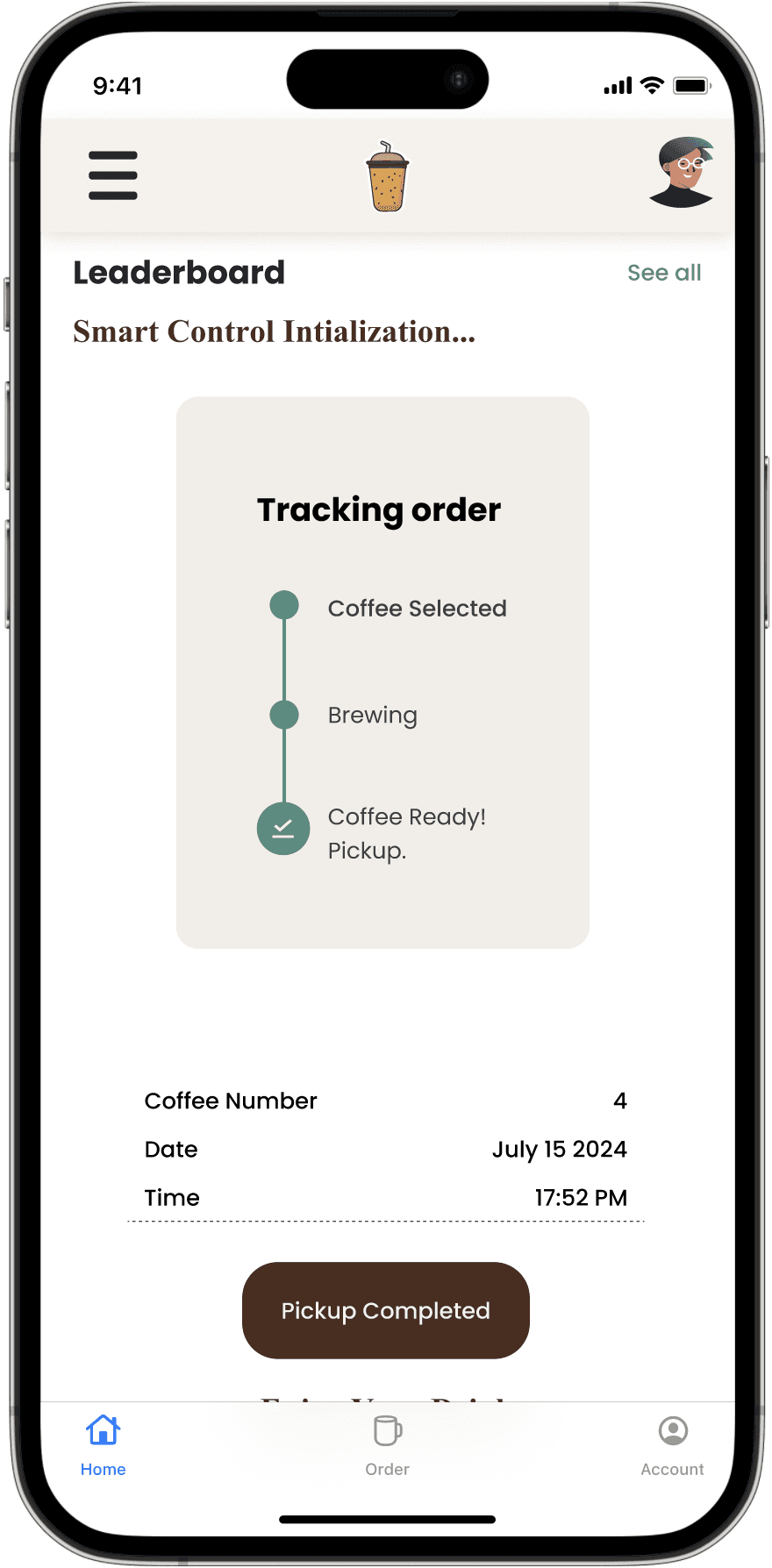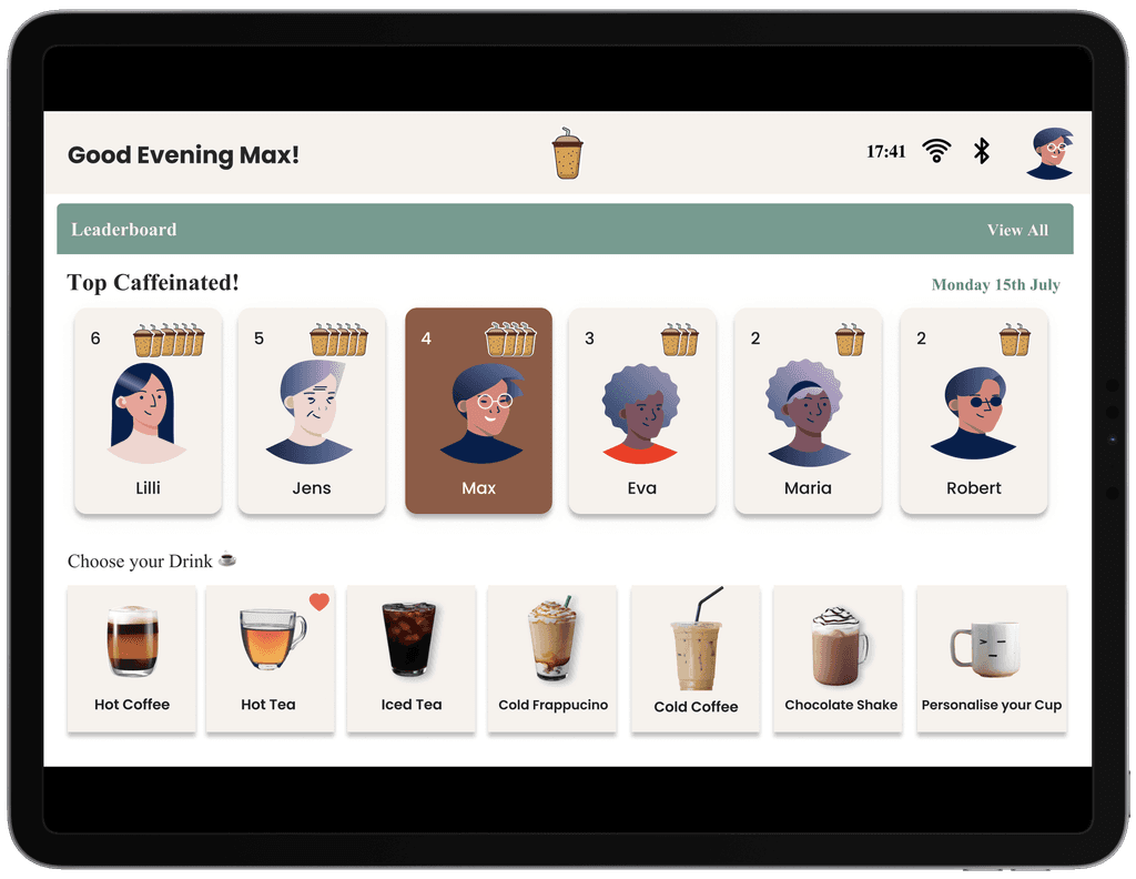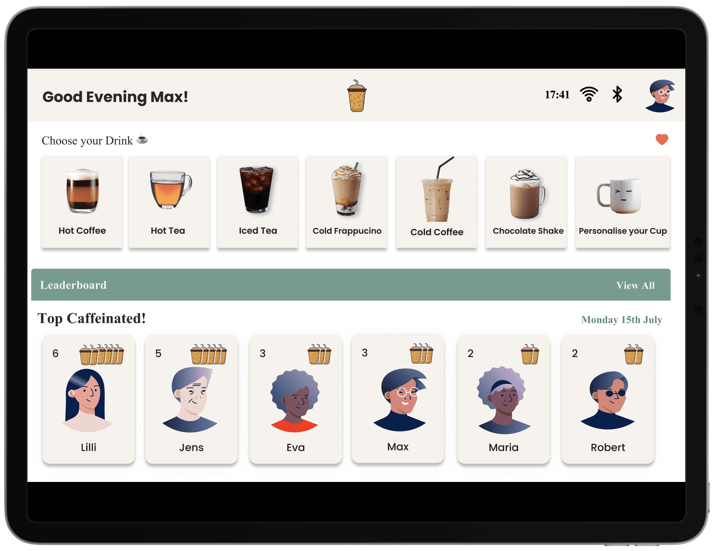 The UI for BrewView was designed to be intuitive and minimalistic, allowing users to interact easily with the coffee machine. Large buttons, clear icons, and simple navigation ensure that users can quickly access the features.