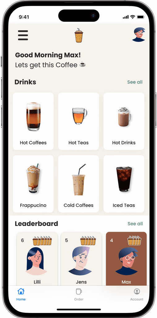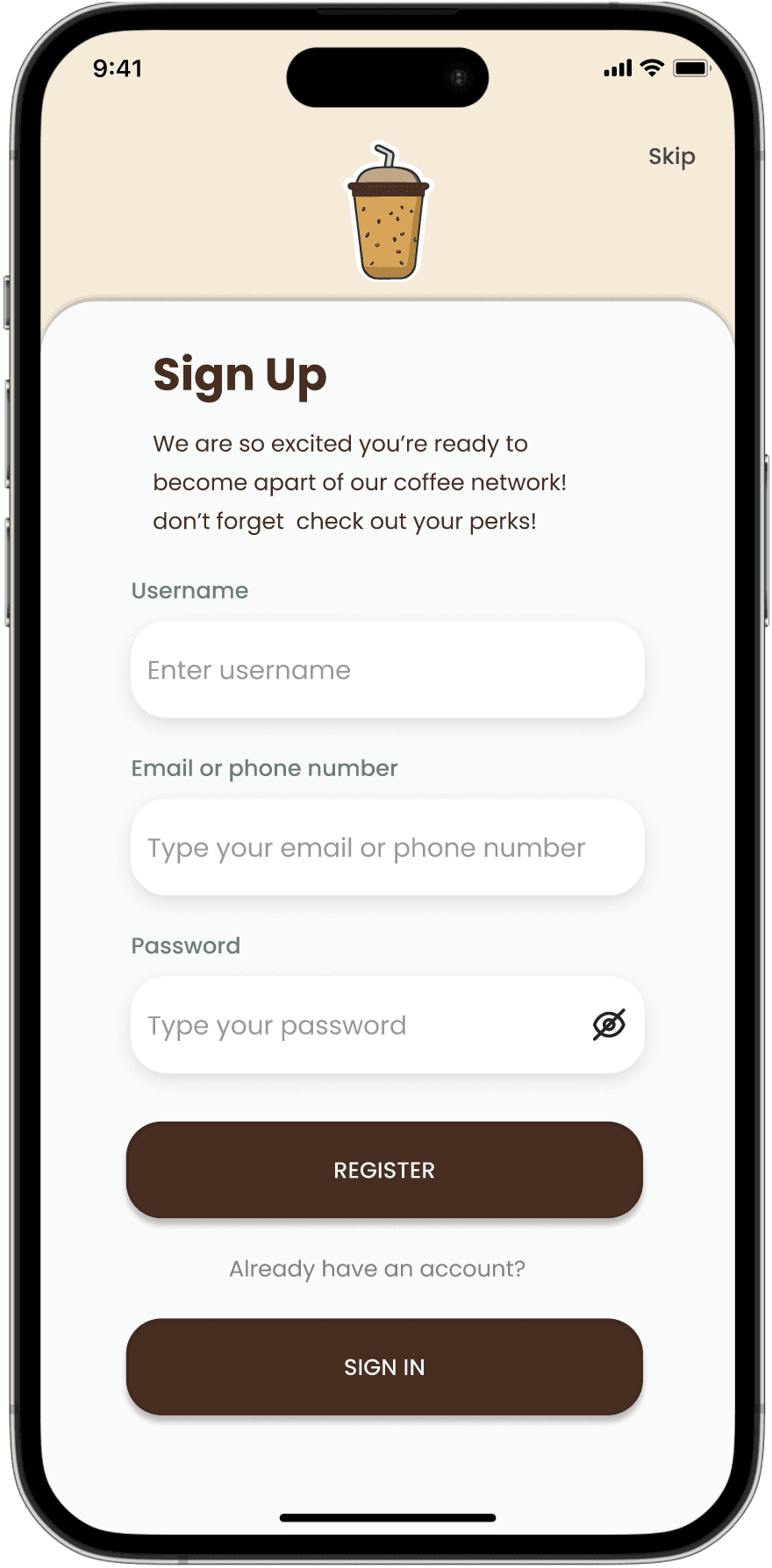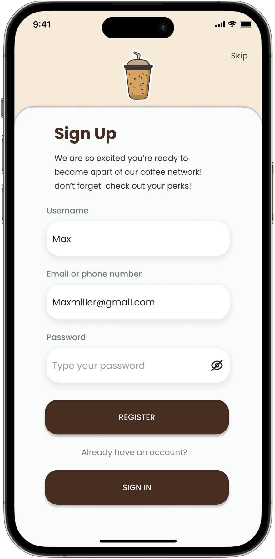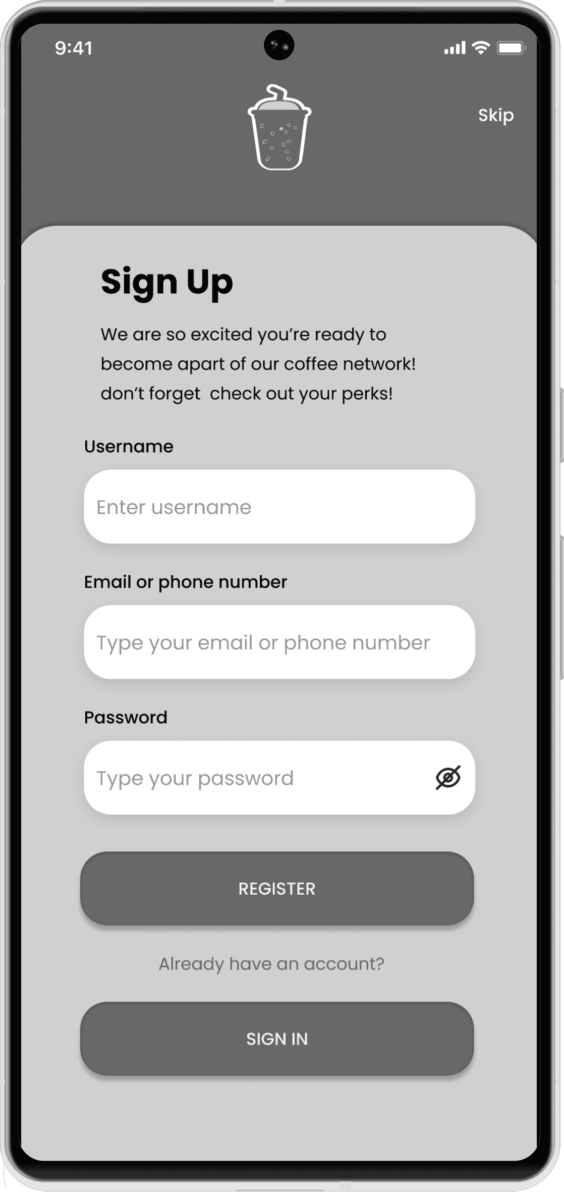 The UI for BrewView was designed to be intuitive and minimalistic, allowing users to interact easily with the coffee machine. Large buttons, clear icons, and simple navigation ensure that users can quickly access the features.