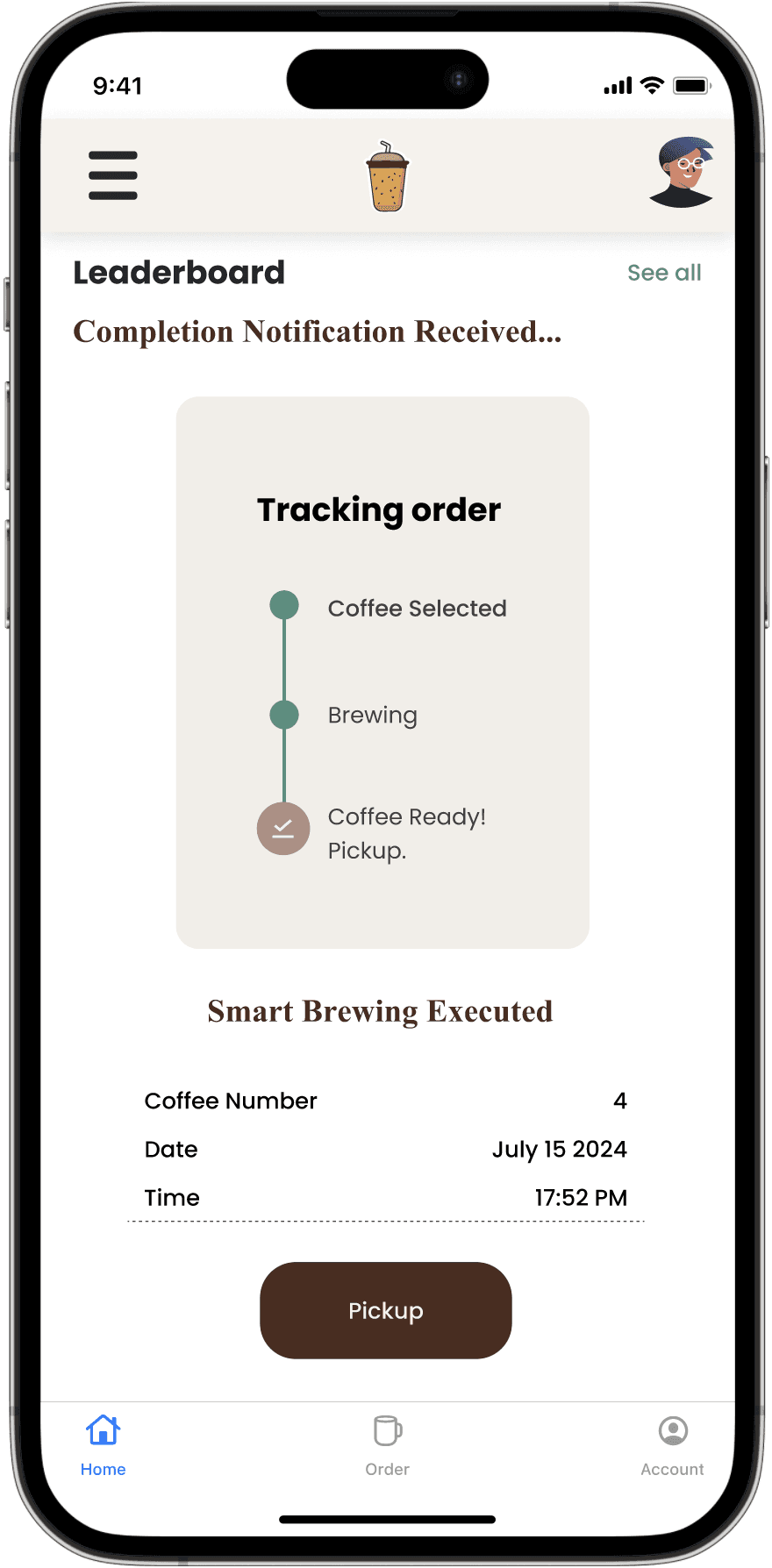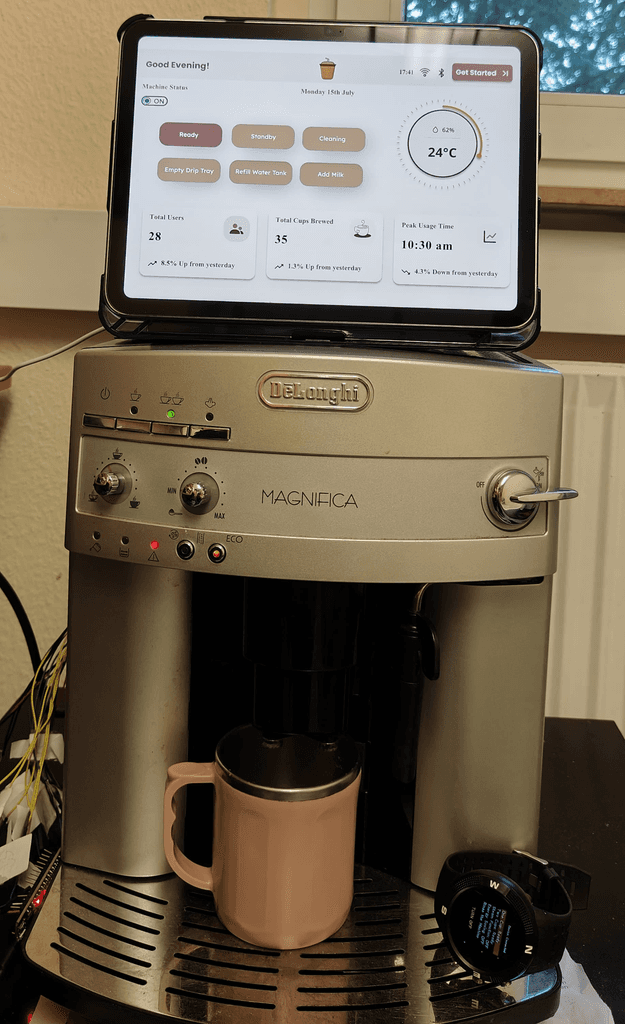 BrewView Interface to Coffee Machine: The BrewView interface also communicates directly with the coffee machine, giving users manual control over the brewing process if needed.