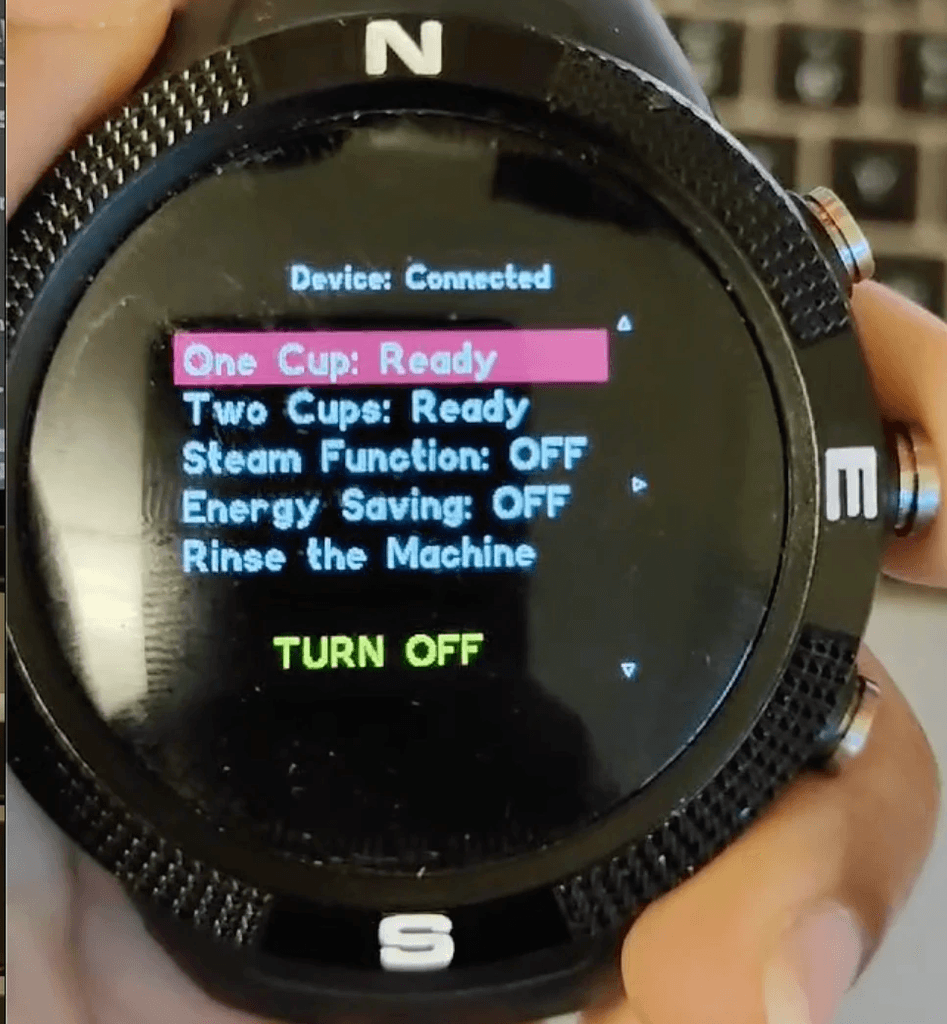 Scenario: Coffee brewing command given via Bangle Watch to the BrewView interface.