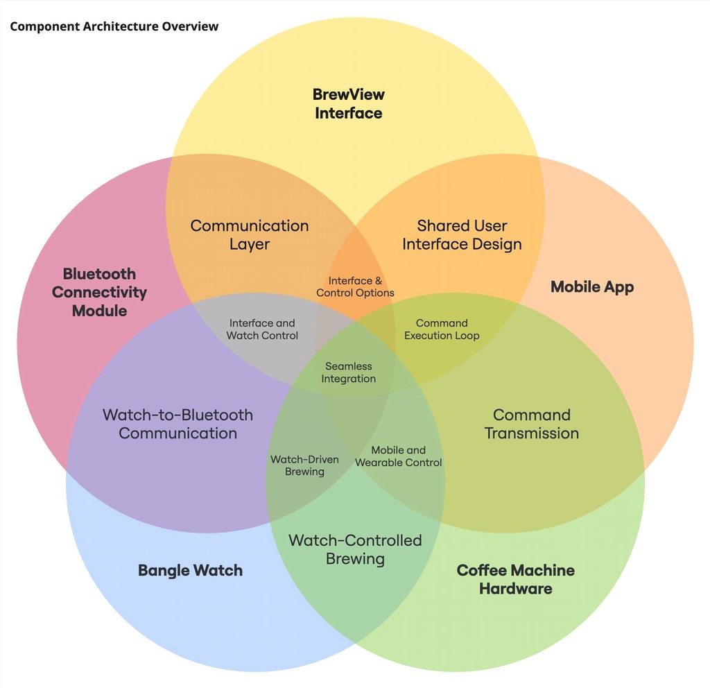 The Interface Architecture (hardware components) outlines the backend infrastructure that facilitates seamless communication between the BrewView interface, mobile app, and the coffee machine hardware. This architecture ensures that user commands are transmitted accurately and efficiently, enabling real-time interaction with the smart coffee machine.