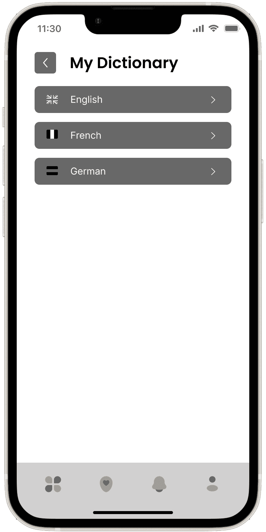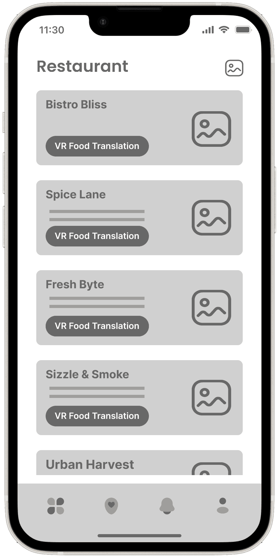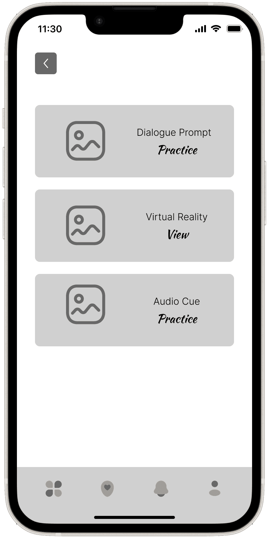 The Wireframes section for the VR Language Learning Application presents a low-fidelity visual outline of the app’s interface and key interactions. These wireframes focus on mapping out the core features and user flows, ensuring that the design supports seamless language practice in an immersive environment.