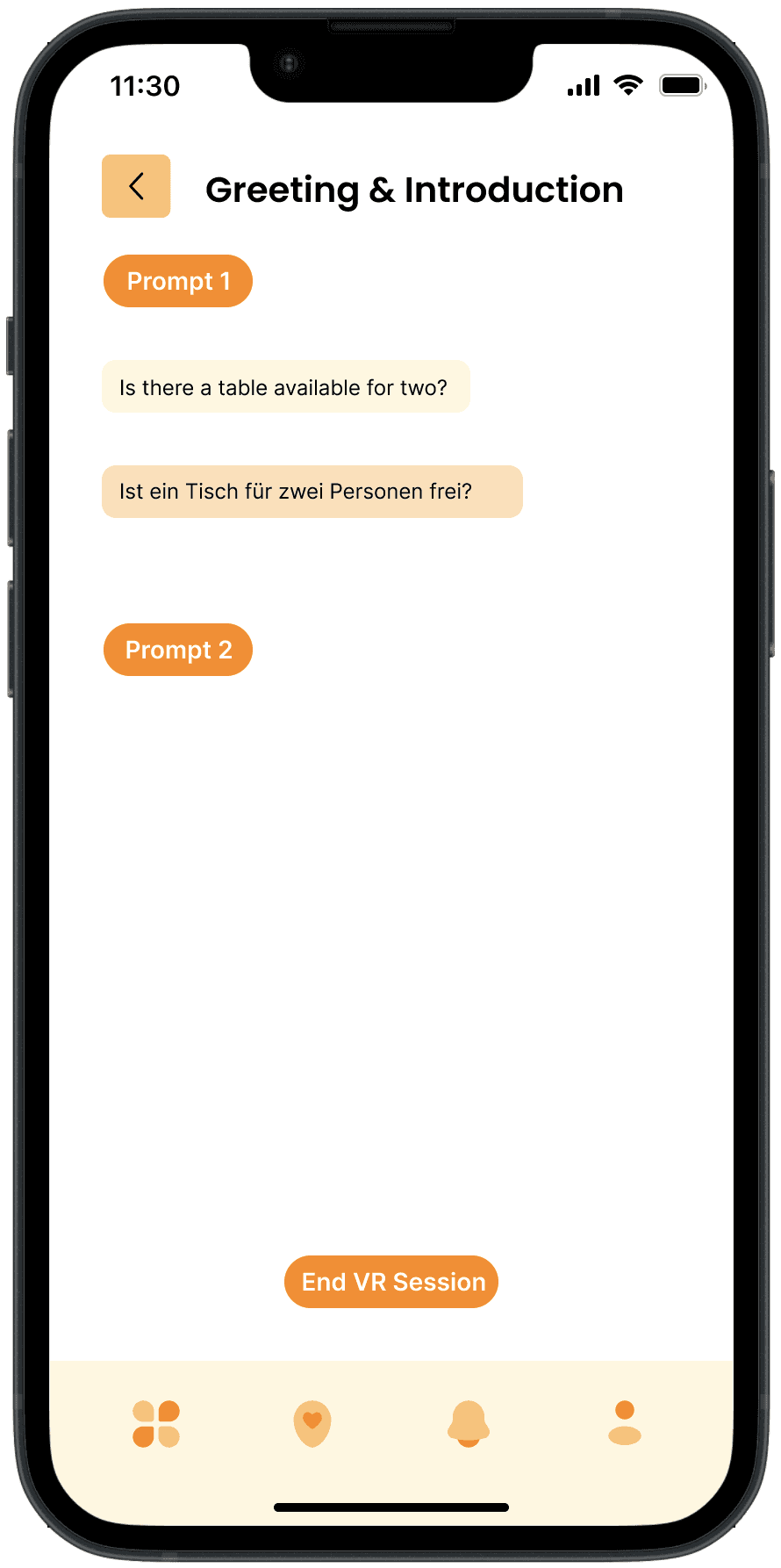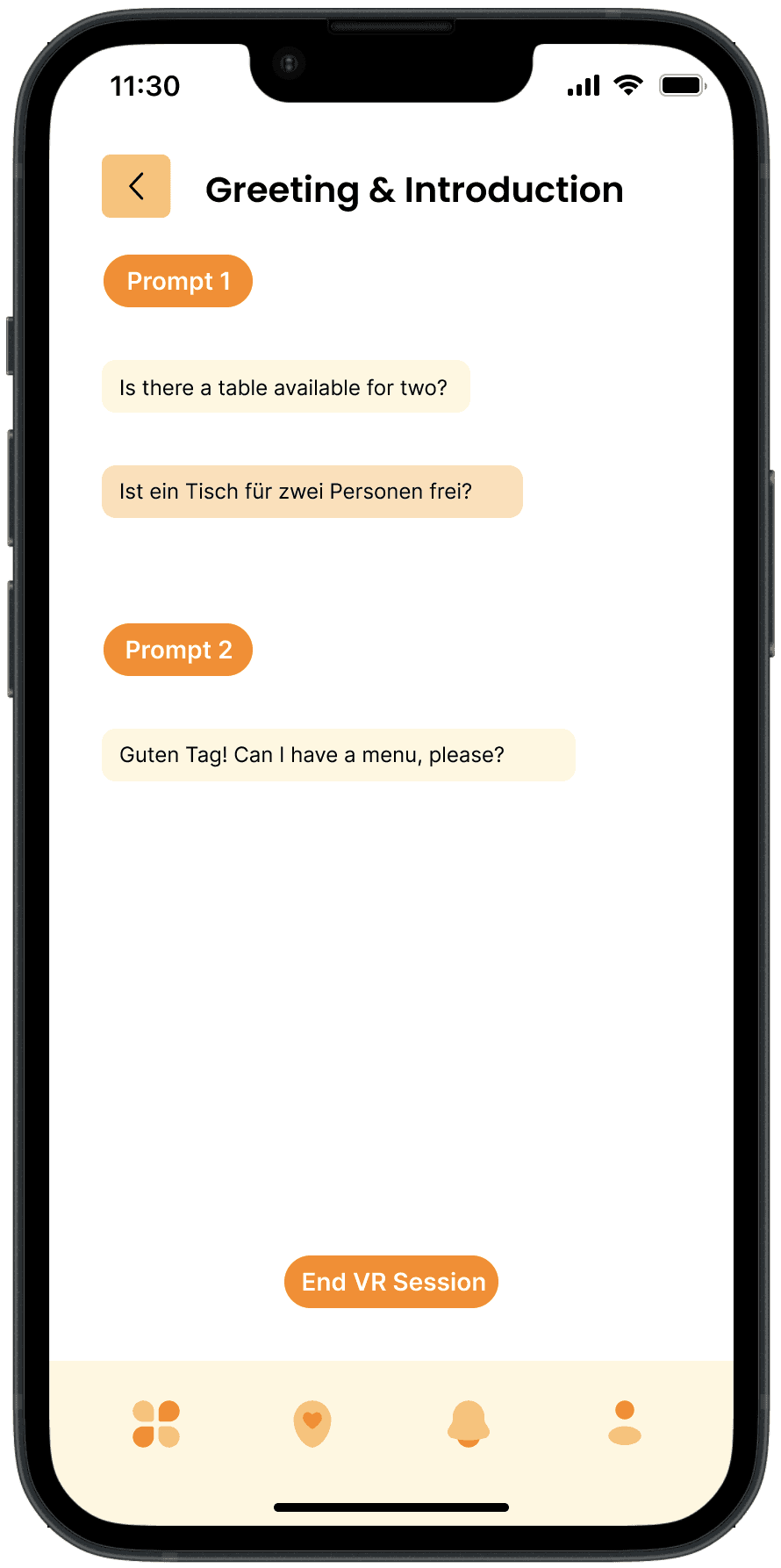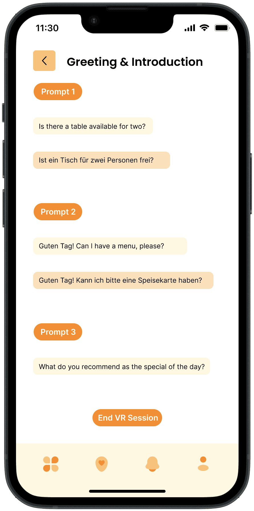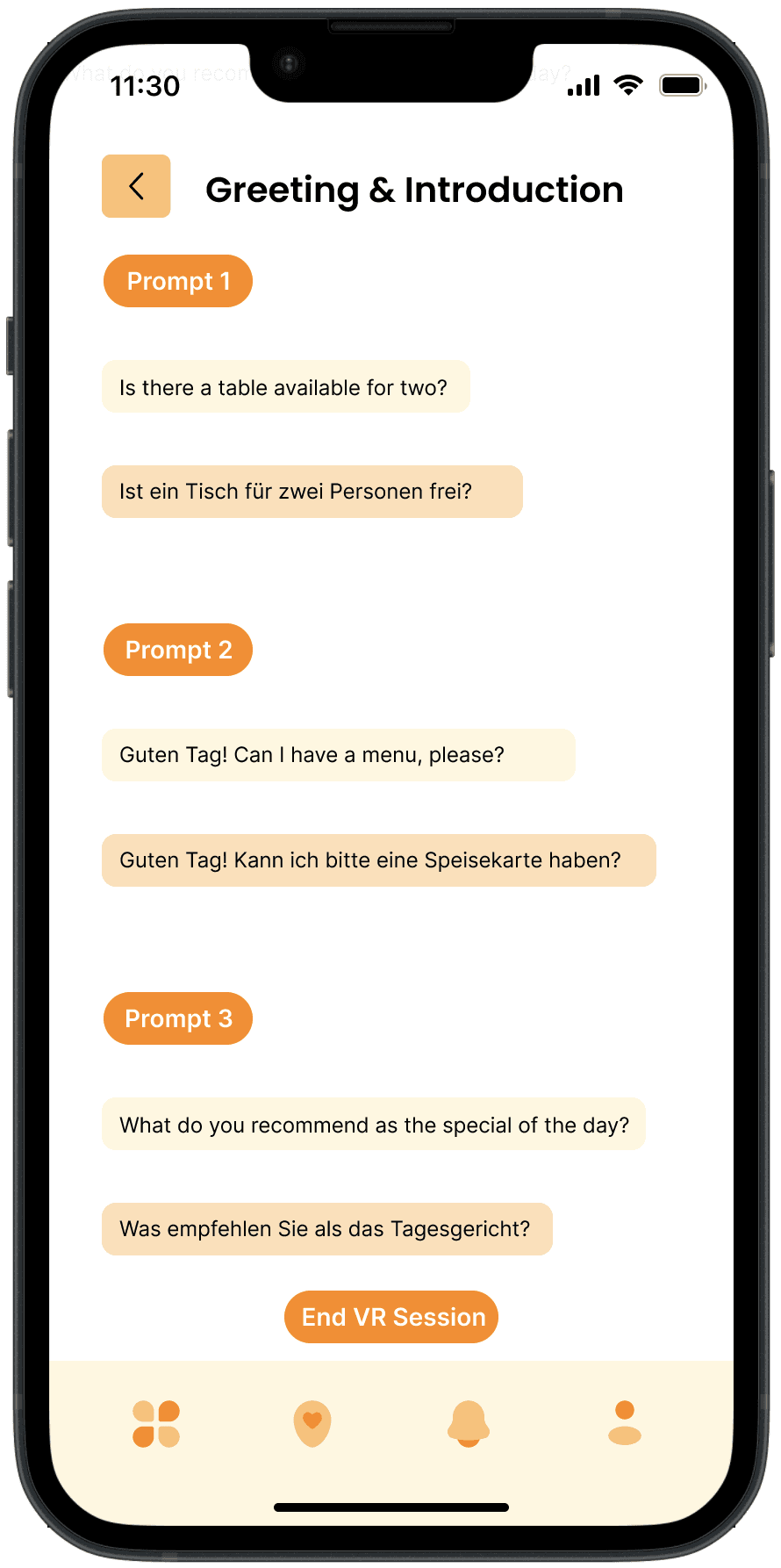 Dynamic VR Interactions: Demonstrates how the app utilizes virtual reality to simulate real-world conversations and scenarios, enabling users to practice language skills in an interactive and realistic environment.