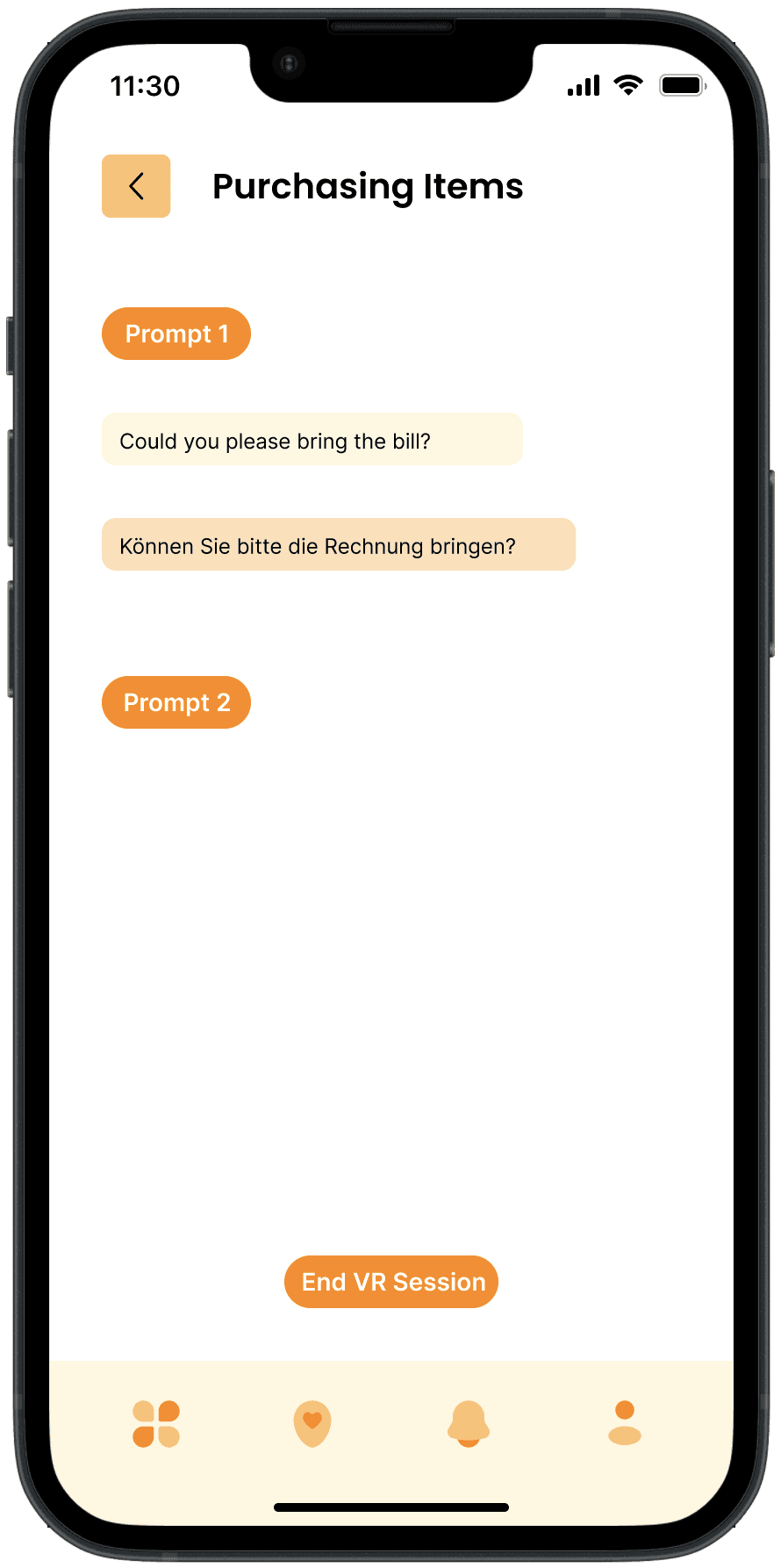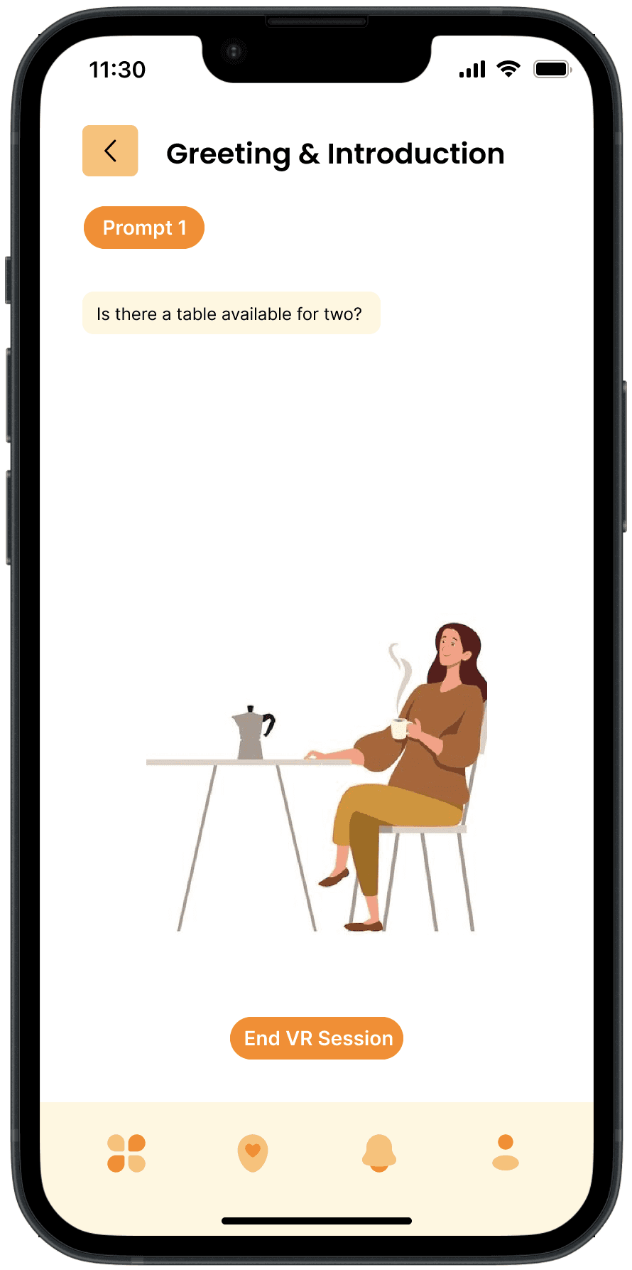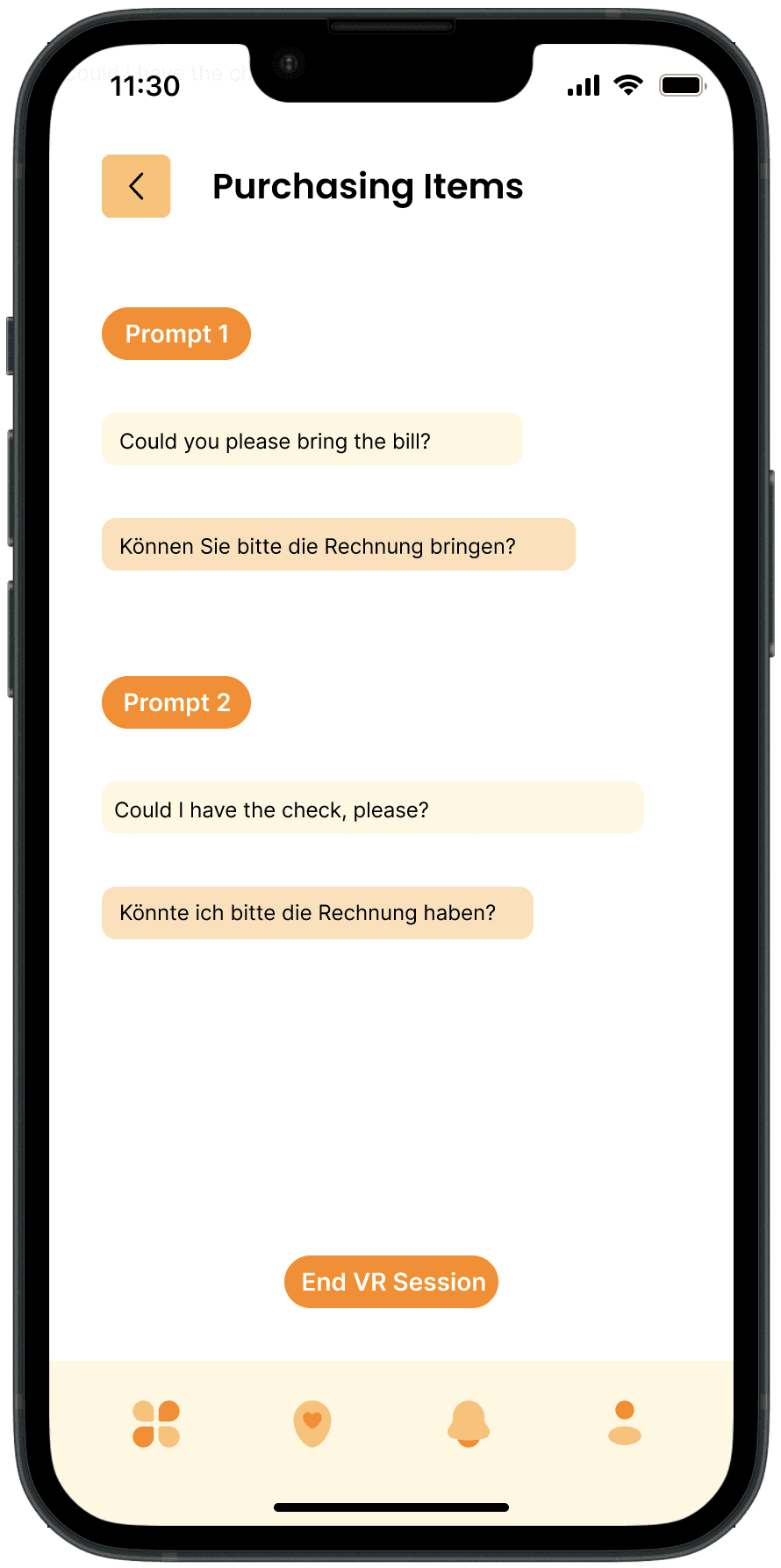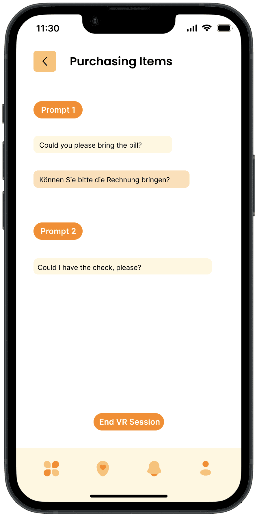 Dynamic VR Interactions: Demonstrates how the app utilizes virtual reality to simulate real-world conversations and scenarios, enabling users to practice language skills in an interactive and realistic environment.