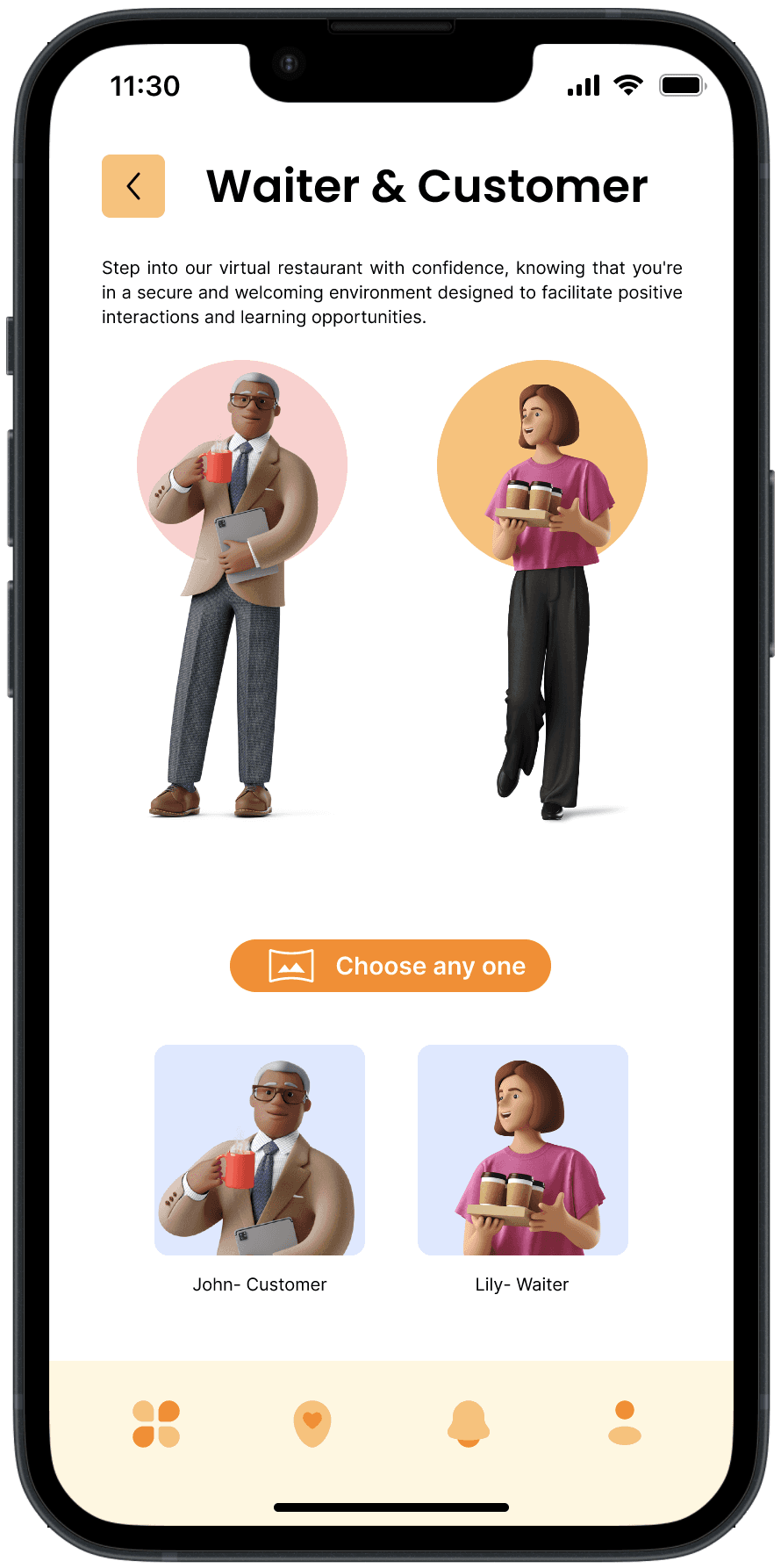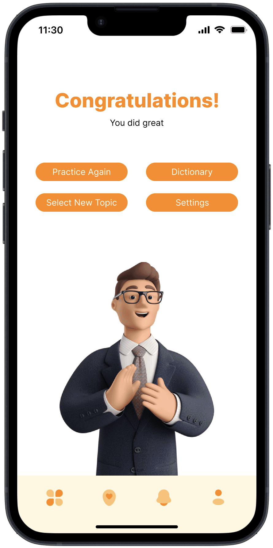 Objective: To provide users with a stress-free, interactive environment where they can practice language skills without fear of judgment, allowing them to build confidence and improve fluency.