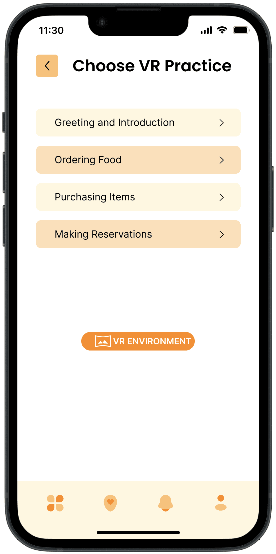 The Figma prototype for the VR Language Learning App showcases an immersive design and user experience tailored to enhance language acquisition through virtual environments. This prototype illustrates the app's intuitive interface, highlighting key features and interactions that provide engaging and practical learning experiences.