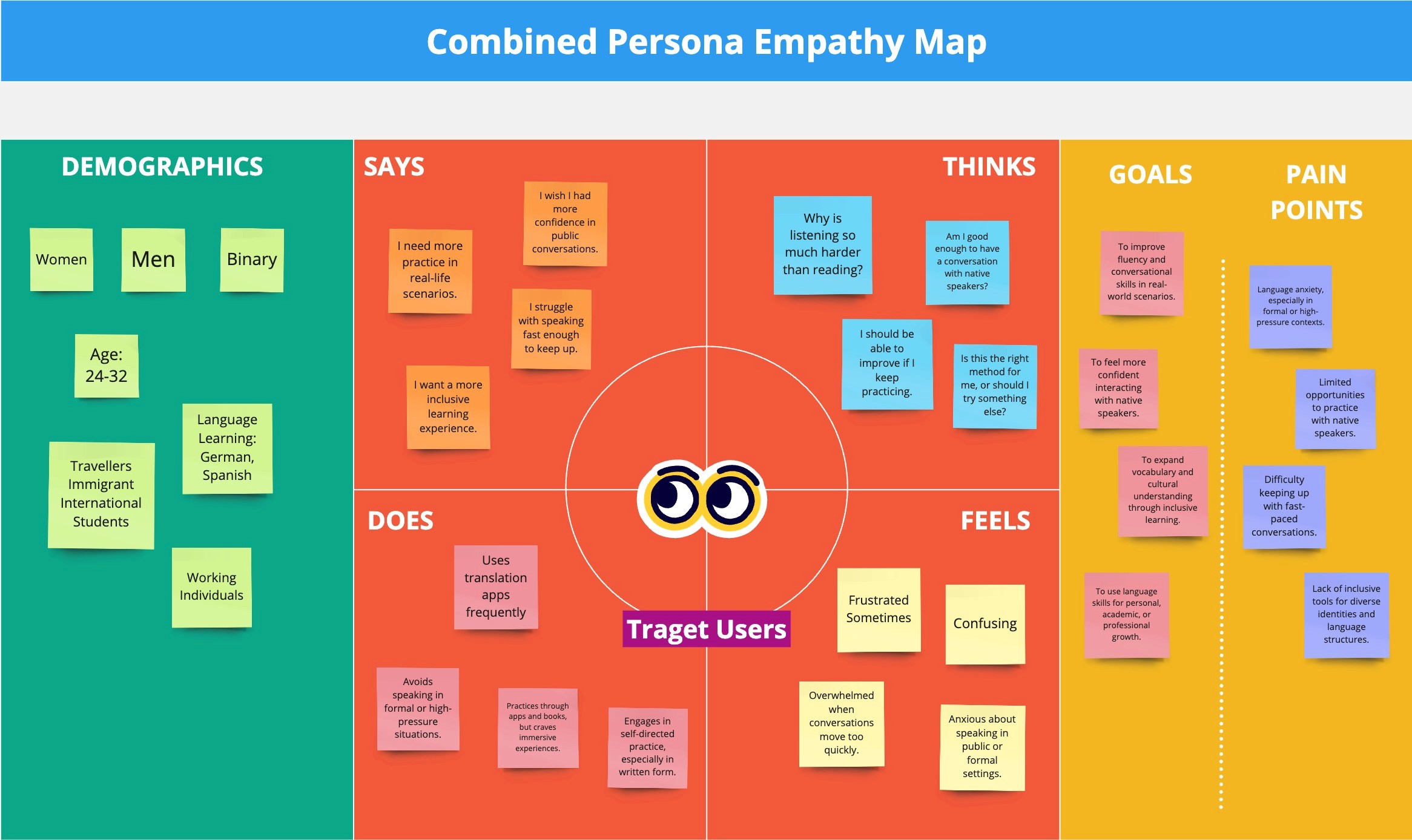 User interviews were conducted to explore language learning and speaking challenges among individuals and foreigners.