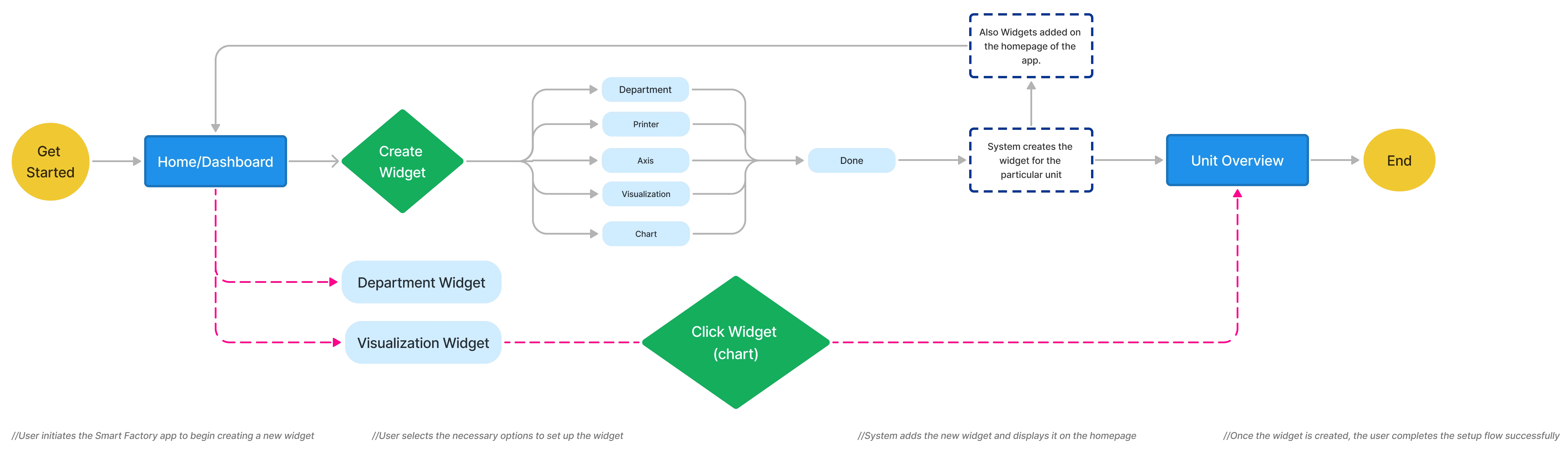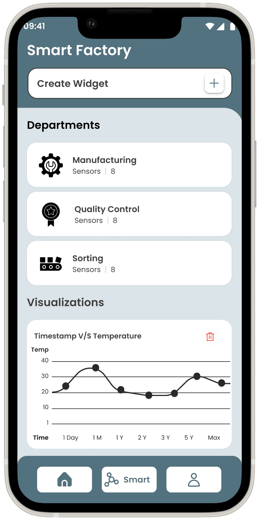 Objective: Guide the user through creating a new widget to monitor factory data in the Smart Factory system.