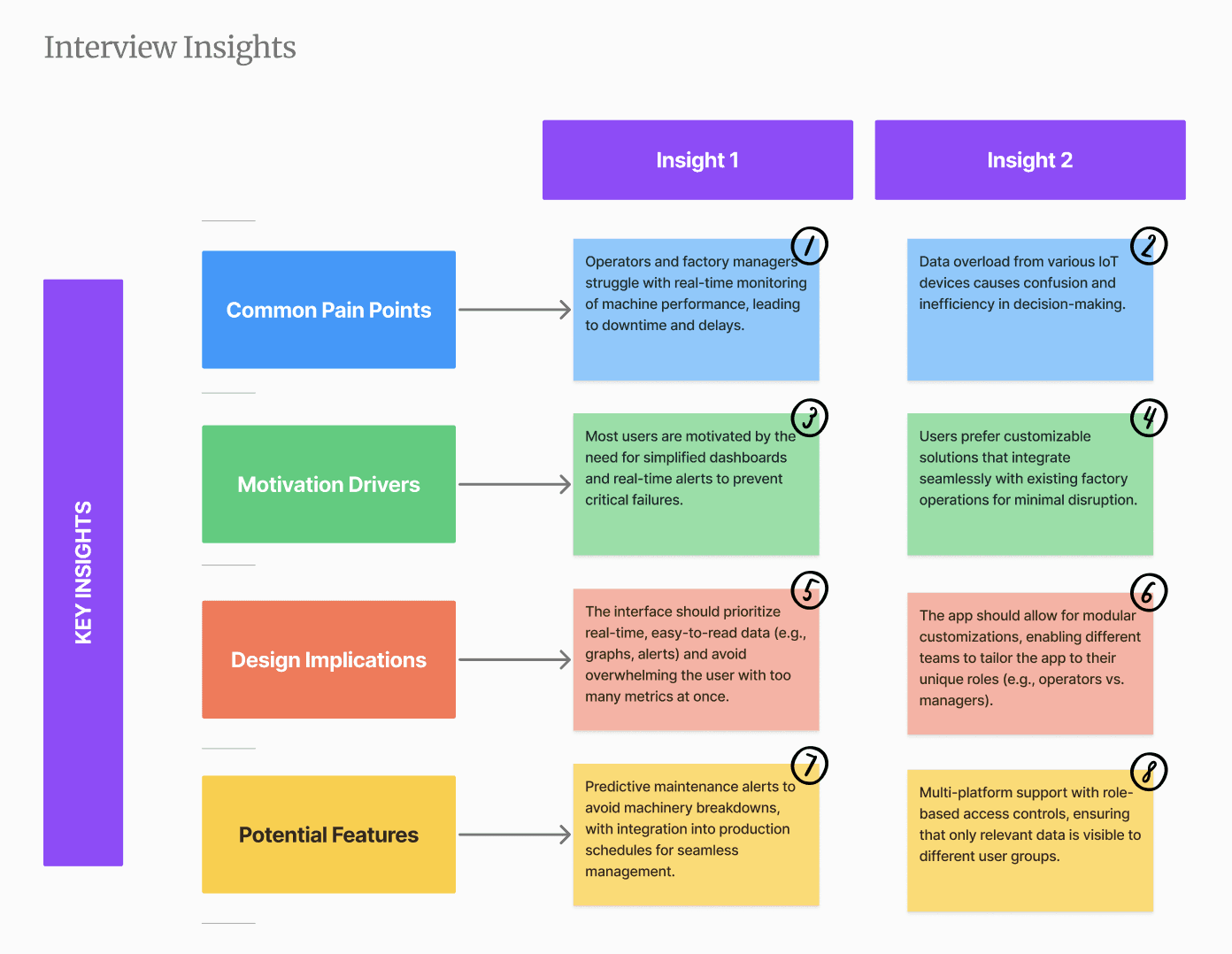 Defined Core Pain Points: Users struggle with data overload, ineffective monitoring systems, and unplanned machinery downtime, leading to production delays and decreased efficiency.