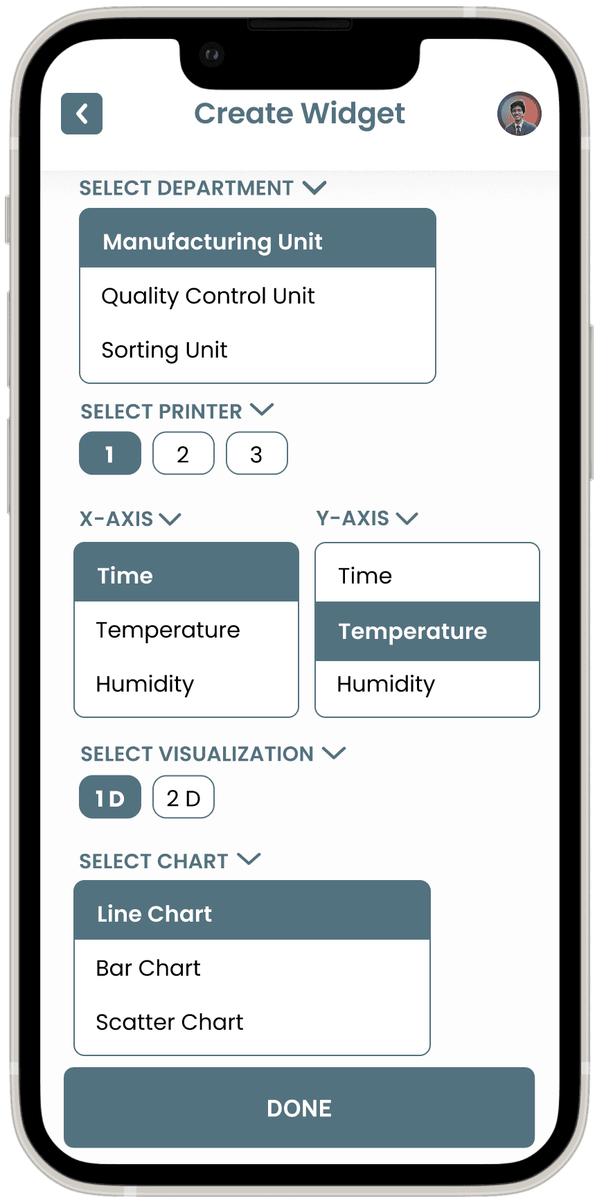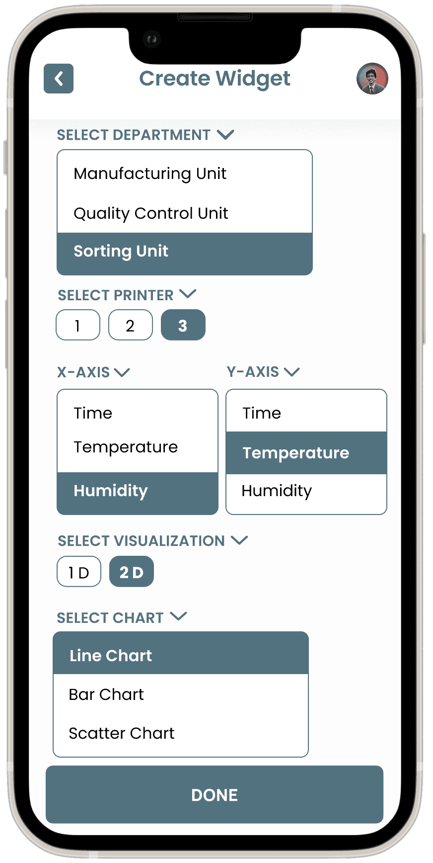 Objective: Assess how easily users can view and interpret real-time data from various manufacturing units (e.g., temperature, moisture, humidity).