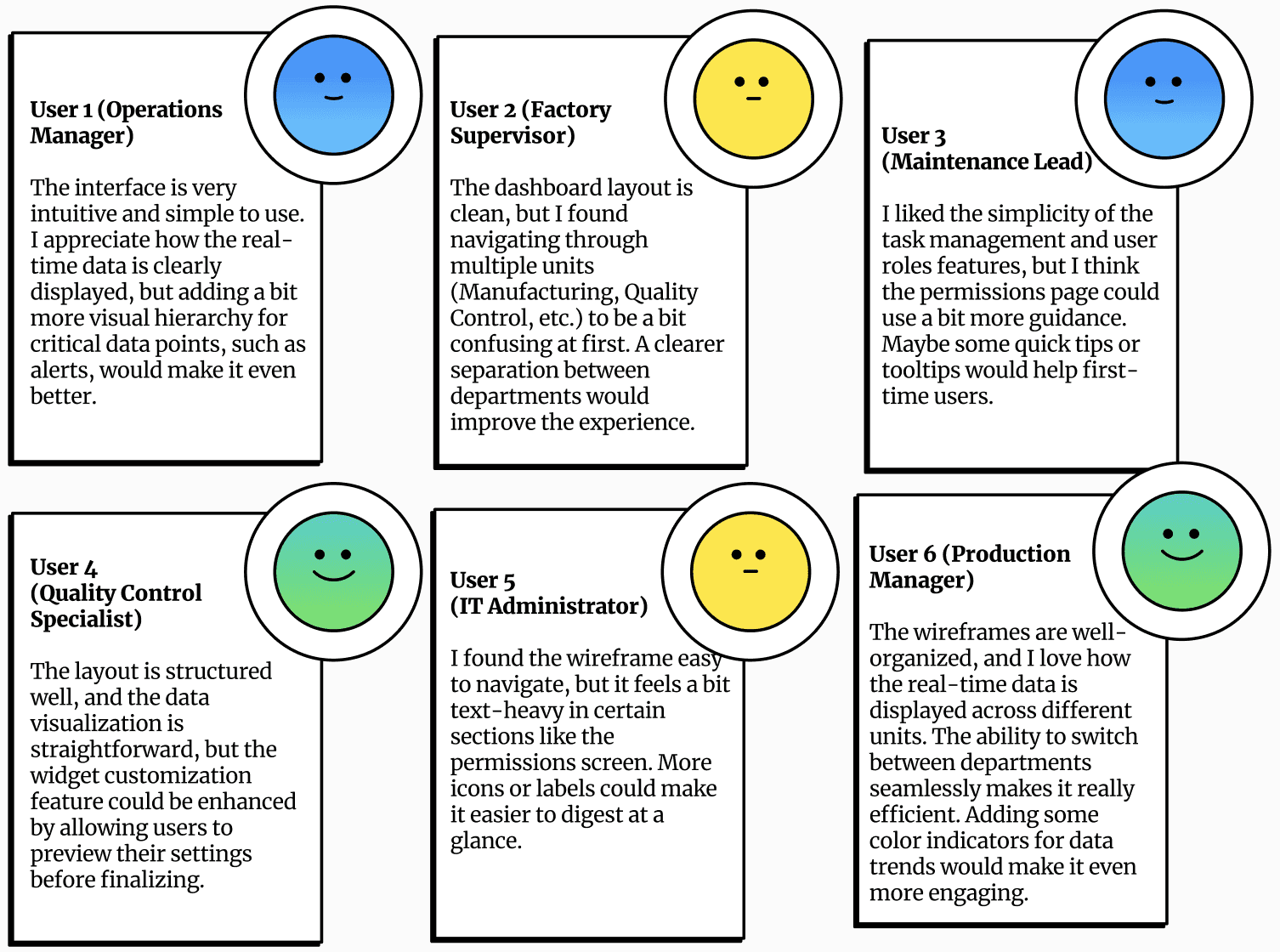 This phase laid the foundation for an innovative solution addressing the diverse needs of factory stakeholders.
