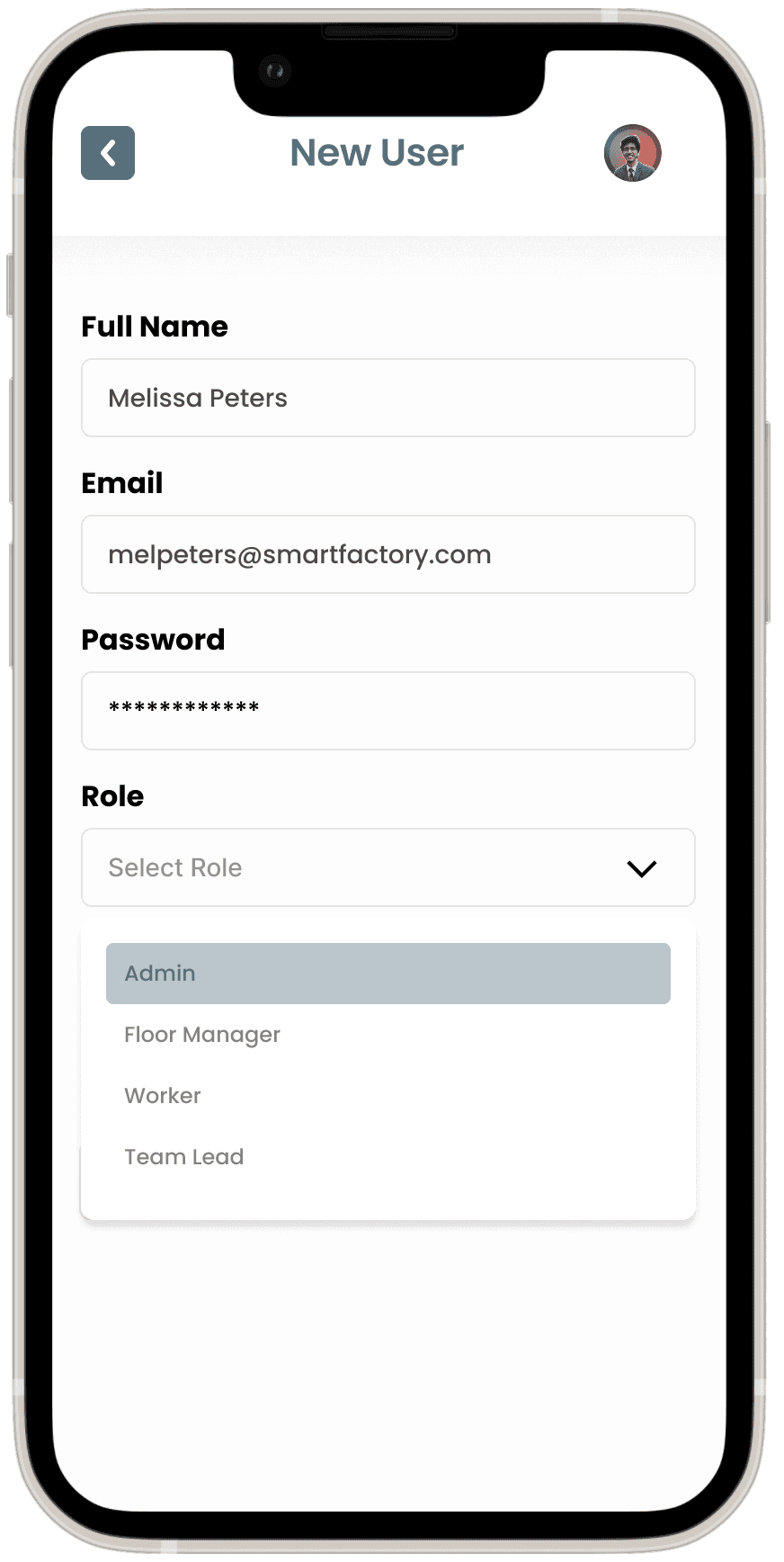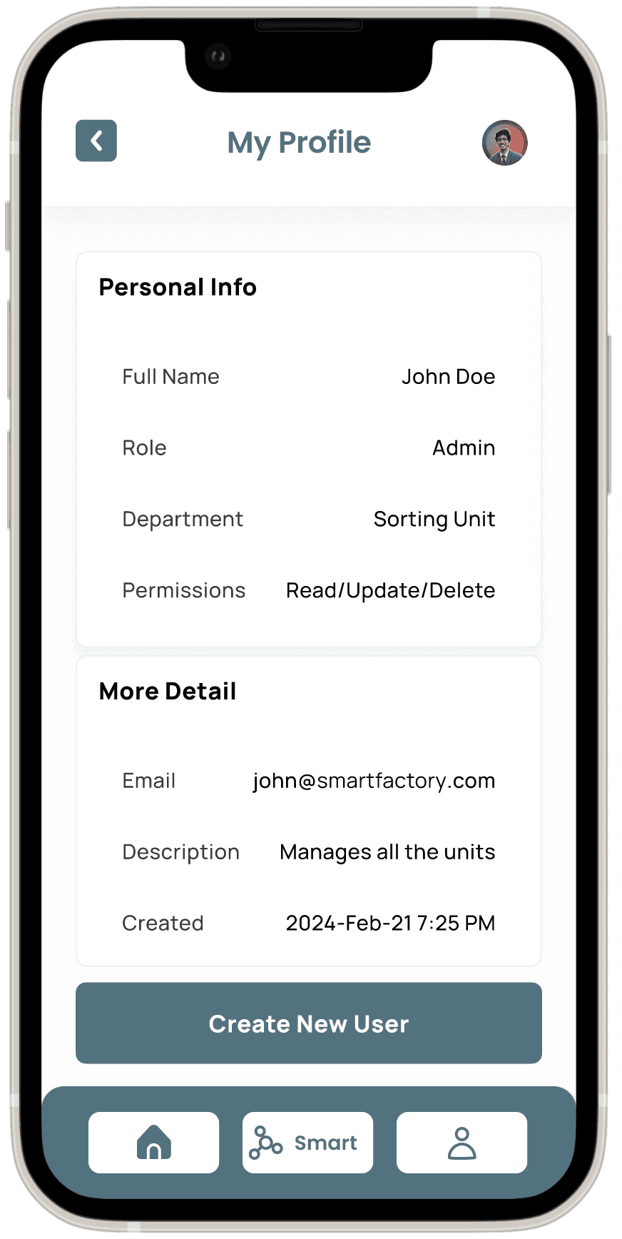 Objective: Enable the system administrator to create and configure a new user in the Smart Factory system.
