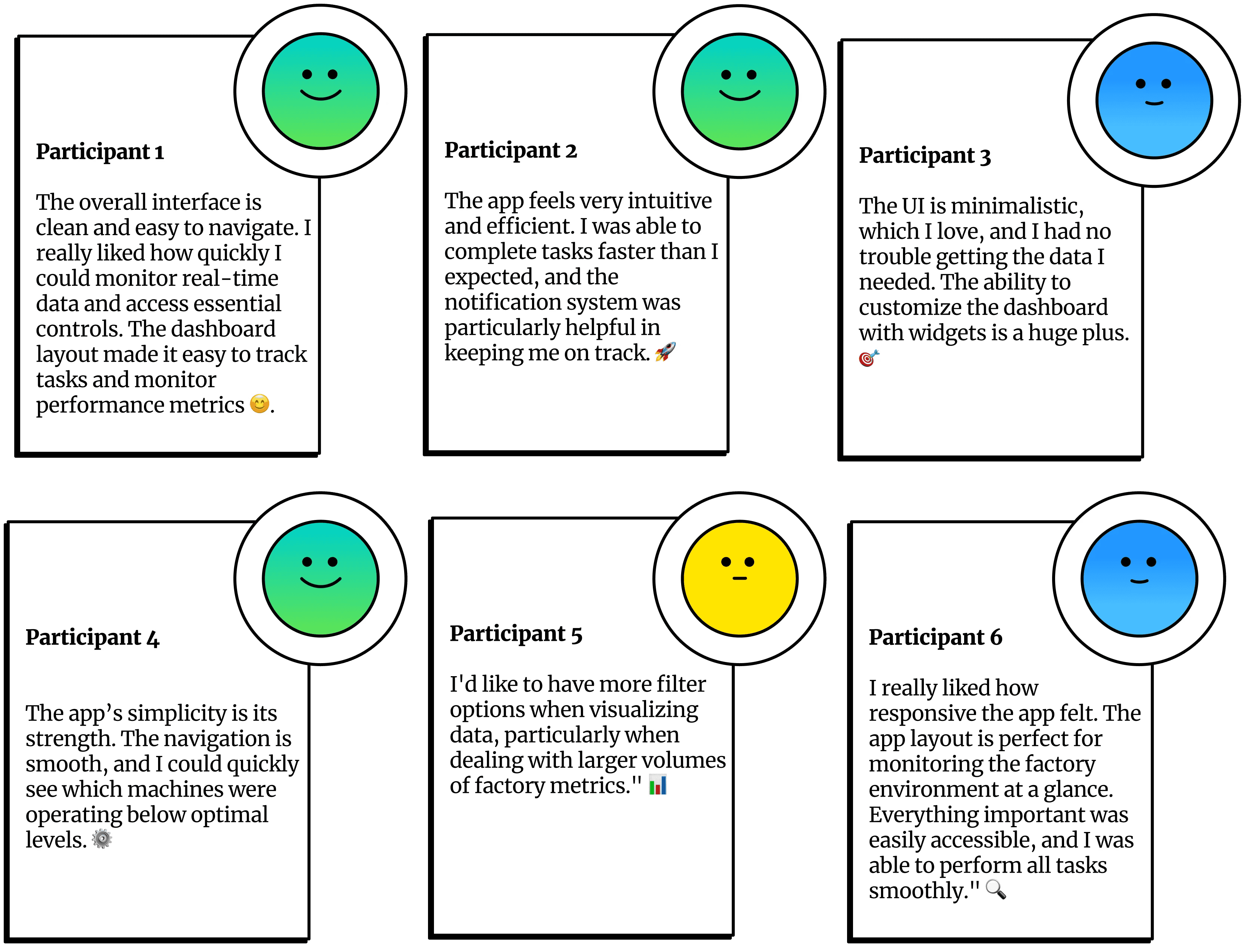 User-Friendly Interface: Participants found the app intuitive for real-time data monitoring and managing manufacturing processes.
