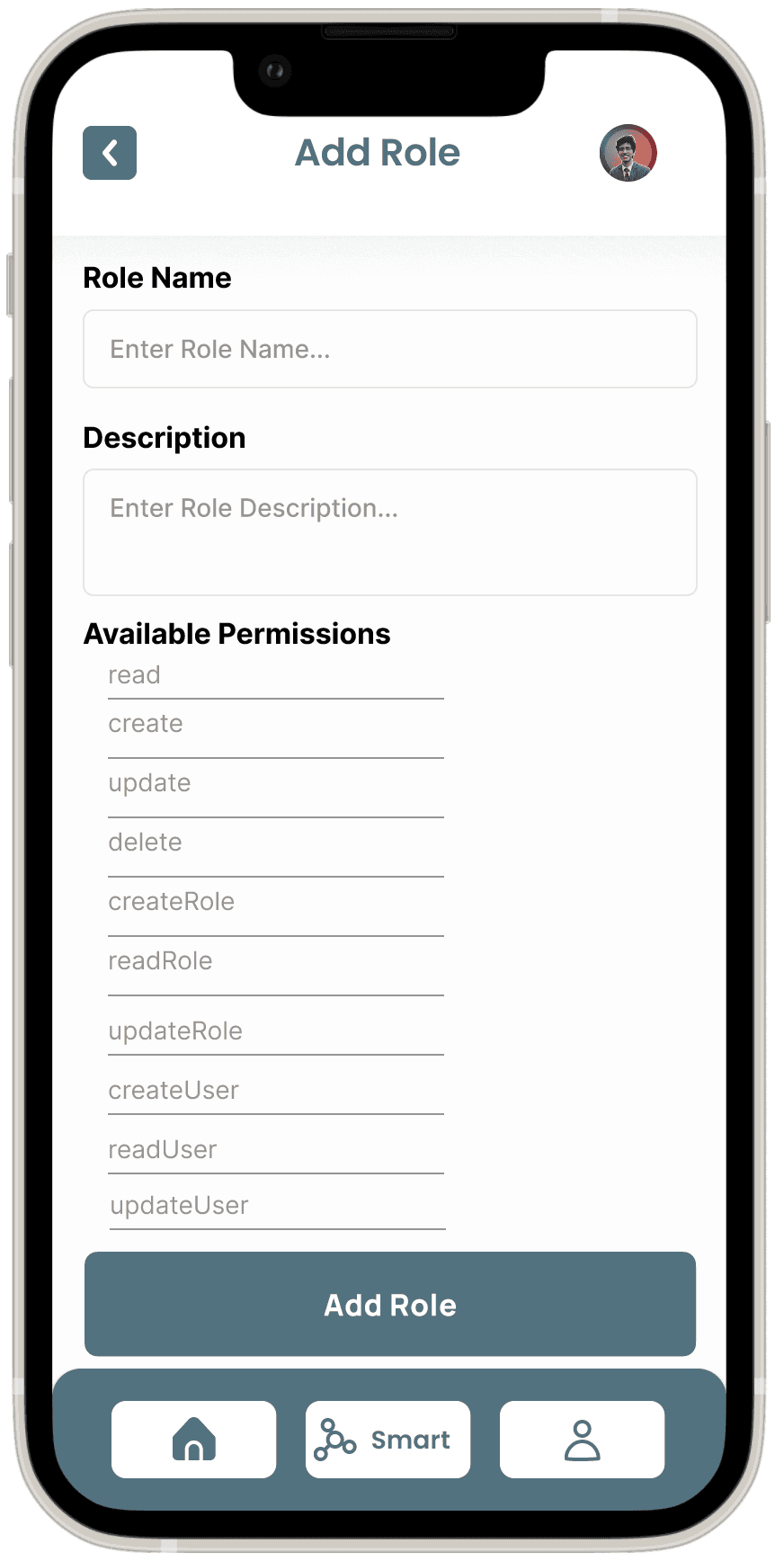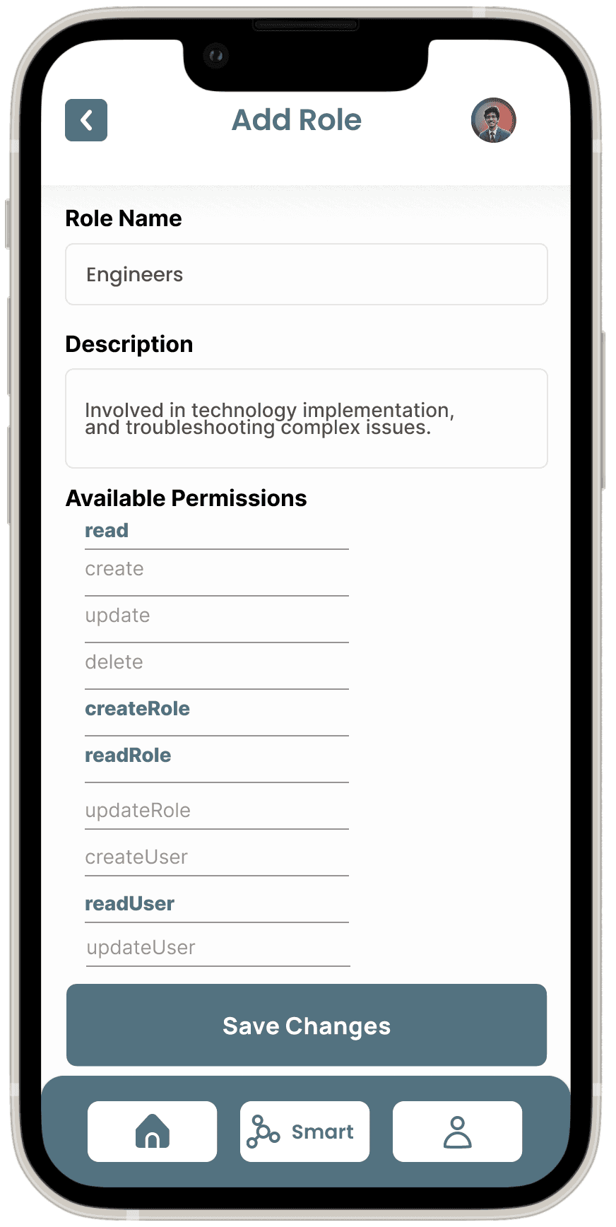Role and Permissions Screen