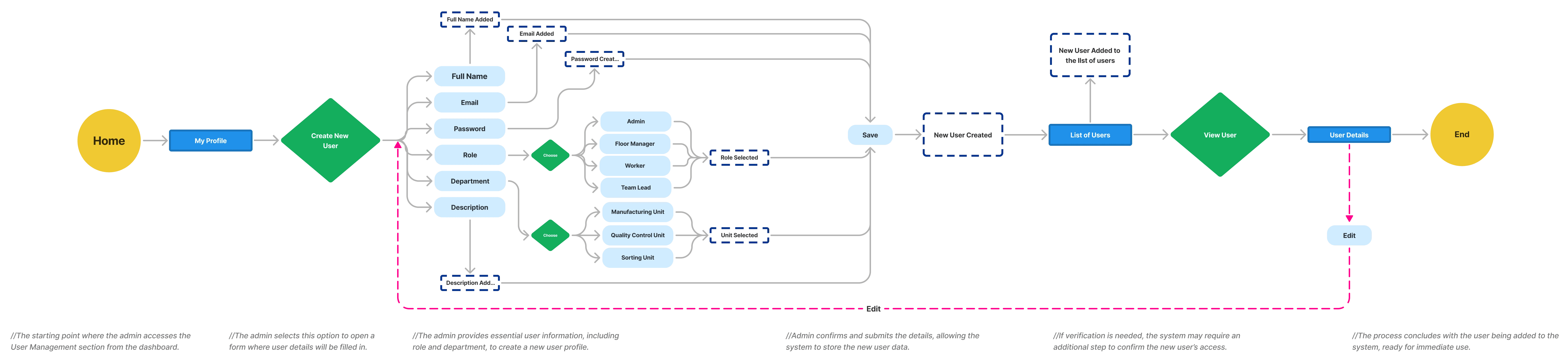 Objective: Help the admin navigate the process of creating and setting up a new user profile.
